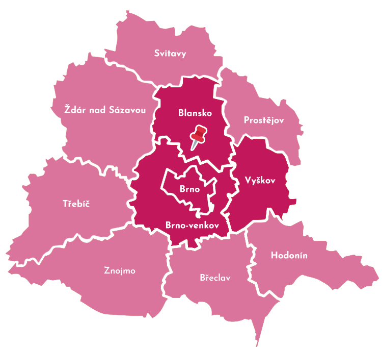 Působím v Jihomoravském kraji, zejména v okresech Blansko, Brno-město, Brno-venkov a Vyškov. Po dohodě jsou však možné i další lokality v rámci České republiky.